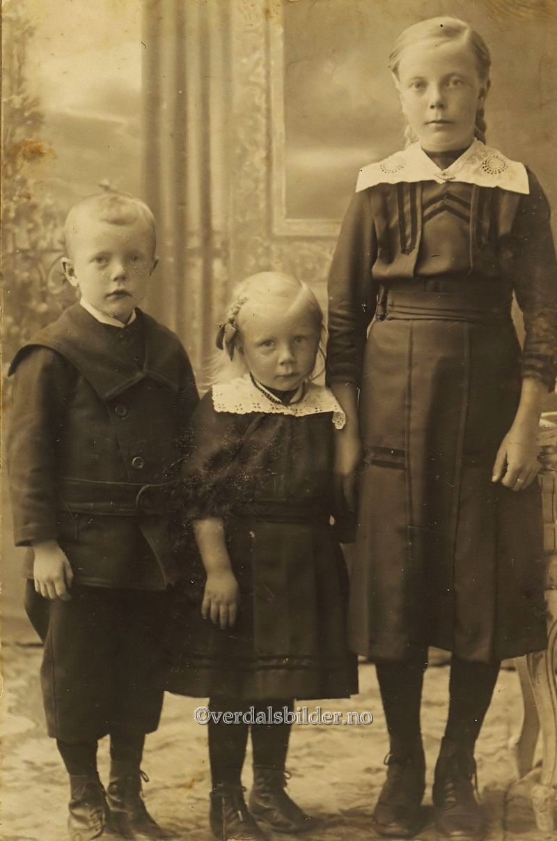 Søsken på Haldåsen i Sjøbygda omkring år 1914 -- Ukjent fotograf. Utlånt med navn av Aud Storhaug, Har du korrigeringer, nye navn eller en kommentar? Ring eller send sms til 472 97 311 eller 456 00 950 Det beste er å sende en E-post til: post@verdalsbilder.no Tips noen om dette bildet : Klikk her Forstørre bildet Bruk ctrl-knapp + musehjul oppover for å forstørre bildet. Bruk ctrl-knapp + musehjul nedover for å forminske bildet Du kan også bruke "ctrl-knapp" samtidig med "+" og "-" på det numeriske tastaturet. "Ctrl" og "*" (eller null) tilbakestiller størrelsen. | ||||