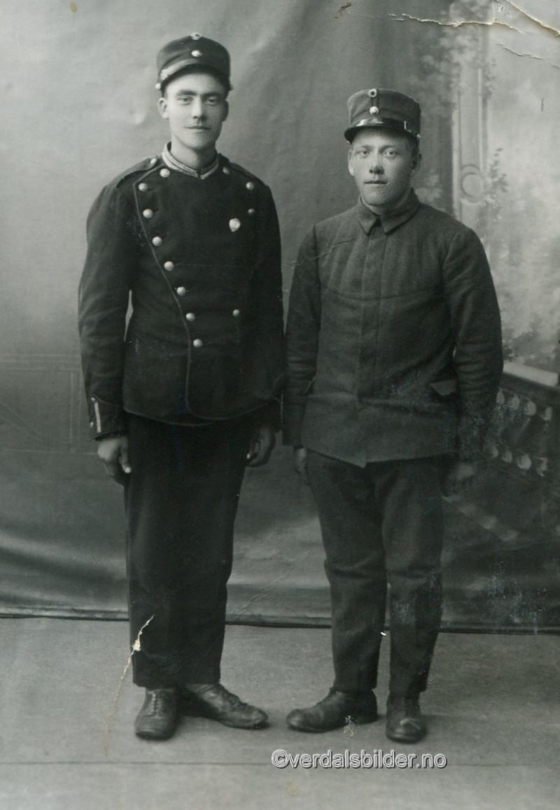 | To helgådalinger i uniform omkring år 1925. Se flere navnsatte bilder Før markør opp til haka på personene for å få opp navn |