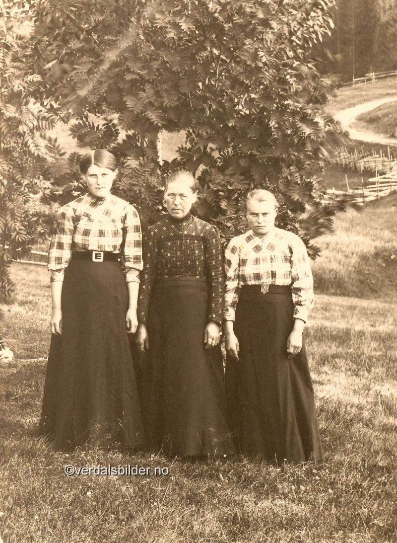 Tre søstre fra Nordkleiva omkring år 1915. -- Foto trolig av Ole Snekkermo. Utlånt av Iris Skoknes. Har du korrigeringer, nye navn eller en kommentar? Ring eller send sms til 472 97 311 eller 456 00 950 Det beste er å sende en E-post til: post@verdalsbilder.no Tips noen om dette bildet : Klikk her Forstørre bildet Bruk ctrl-knapp + musehjul oppover for å forstørre bildet. Bruk ctrl-knapp + musehjul nedover for å forminske bildet Du kan også bruke "ctrl-knapp" samtidig med "+" og "-" på det numeriske tastaturet. "Ctrl" og "*" (eller null) tilbakestiller størrelsen. | ||||