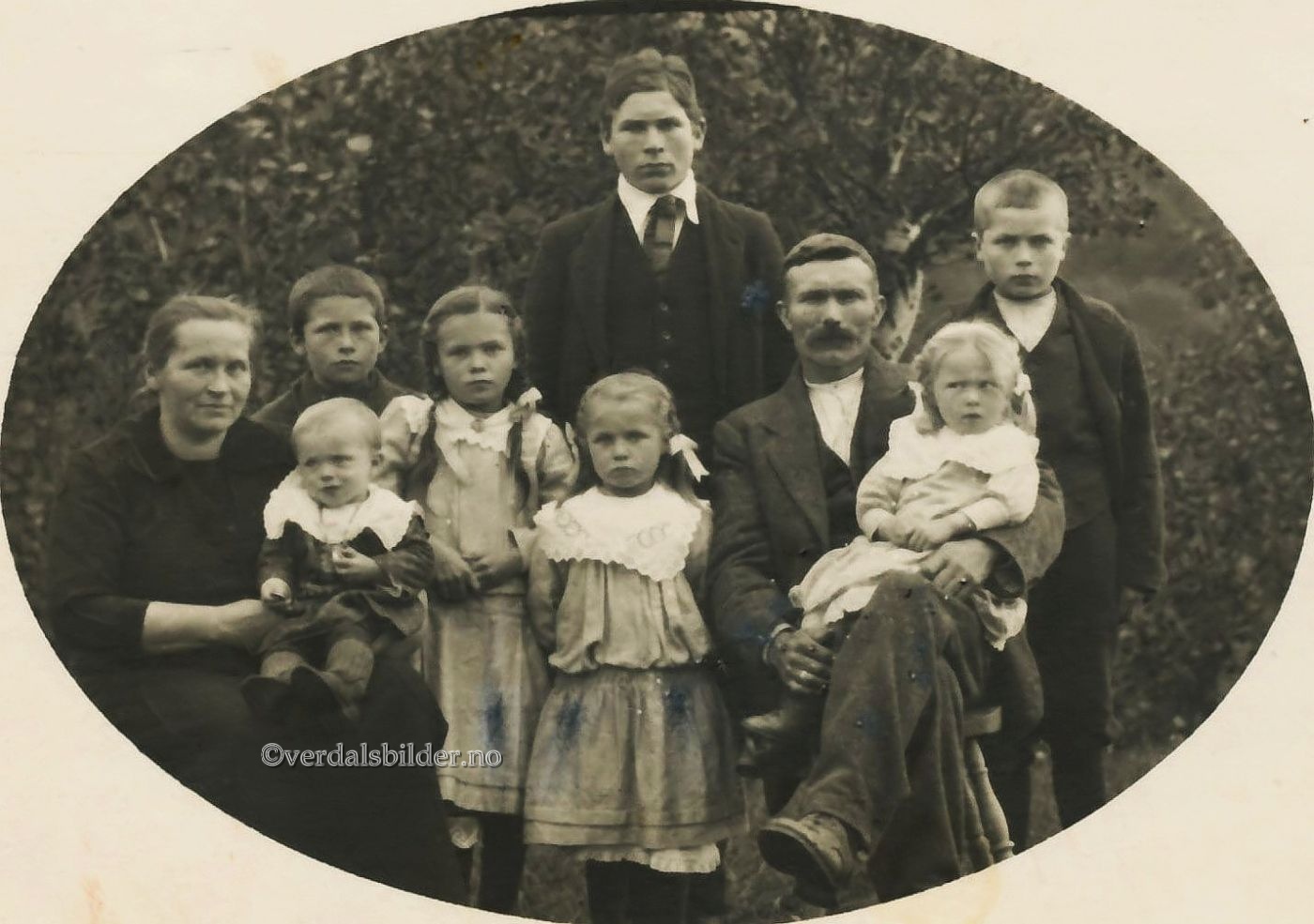 Familien på Nessemoen i Helgådalen år 1919 -- Utlånt av Tor Bjartan. Navna hentet fra Helgådalens Bildearkiv. Har du korrigeringer, nye navn eller en kommentar? Ring eller send sms til 472 97 311 eller 456 00 950 Det beste er å sende en E-post til: post@verdalsbilder.no Tips noen om dette bildet : Klikk her Forstørre bildet Bruk ctrl-knapp + musehjul oppover for å forstørre bildet. Bruk ctrl-knapp + musehjul nedover for å forminske bildet Du kan også bruke "ctrl-knapp" samtidig med "+" og "-" på det numeriske tastaturet. "Ctrl" og "*" (eller null) tilbakestiller størrelsen | ||||