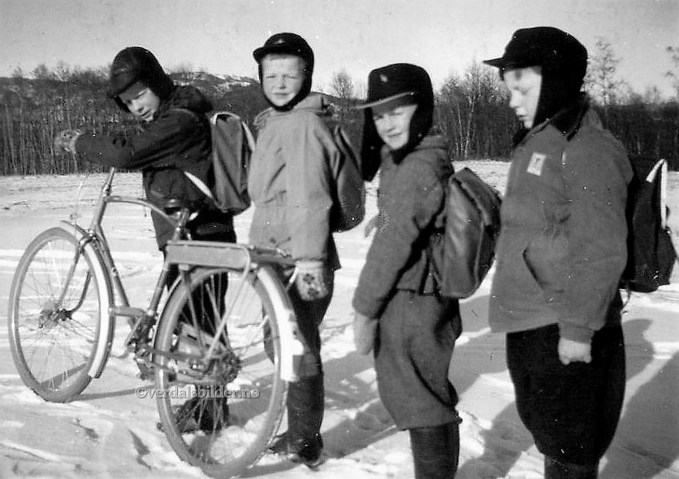 Gutter fra Rosvold/Holmligrenda på skoleveg i år 1955 -- Utlånt med navn av Svein Væren. Har du korrigeringer, nye navn eller en kommentar? Ring eller send sms til 472 97 311 eller 456 00 950 Det beste er å sende en E-post til: post@verdalsbilder.no Tips noen om dette bildet : Klikk her Forstørre bildet Bruk ctrl-knapp + musehjul oppover for å forstørre bildet. Bruk ctrl-knapp + musehjul nedover for å forminske bildet Du kan også bruke "ctrl-knapp" samtidig med "+" og "-" på det numeriske tastaturet. "Ctrl" og "*" (eller null) tilbakestiller størrelsen | ||||
