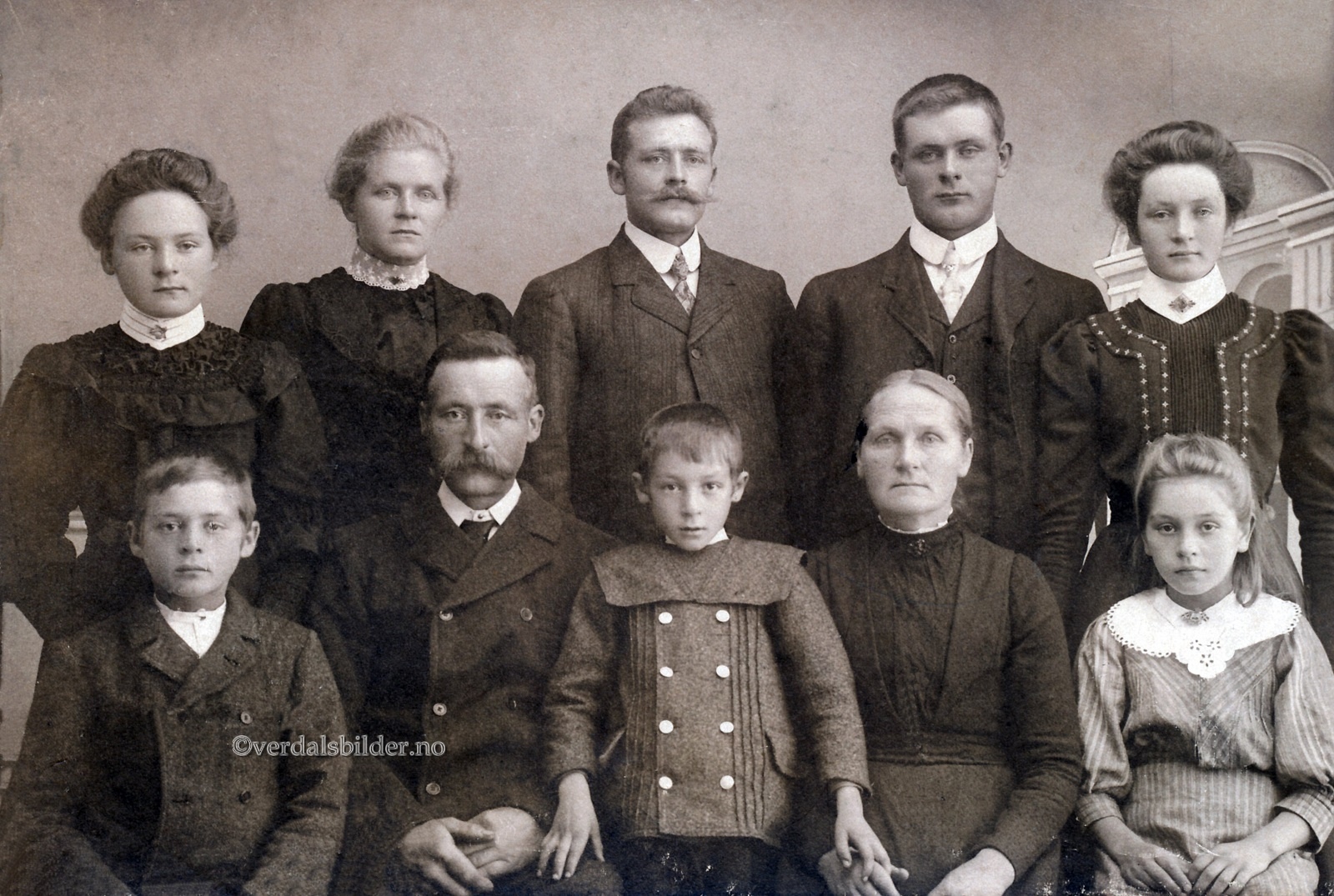Aneus Prestmo med familie i 1908 -- Aneus og familien var brukere på Lyngsmoen. Sønnen Petter kjøpte Jermstad Vestre av sin svigerfar, Andreas Simonsen, i 1909. Opplysninger hentet fra Verdalsboka bind IV og "Heimer og Folk Stiklestad". Utlånt med navna av Rut Åse Prestmo. Har du korrigeringer, nye navn eller en kommentar? Ring eller send sms til 472 97 311 eller 456 00 950 Det beste er å sende en E-post til: post@verdalsbilder.no Tips noen om dette bildet : Klikk her Forstørre bildet Bruk ctrl-knapp + musehjul oppover for å forstørre bildet. Bruk ctrl-knapp + musehjul nedover for å forminske bildet Du kan også bruke "ctrl-knapp" samtidig med "+" og "-" på det numeriske tastaturet. "Ctrl" og "*" (eller null) tilbakestiller størrelsen | ||||