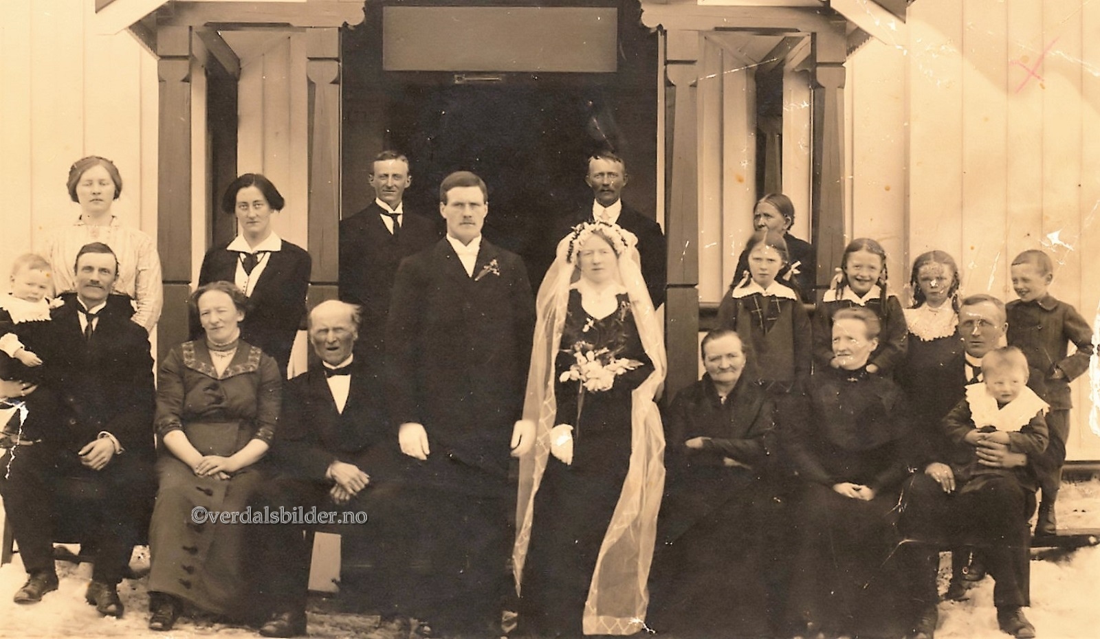 Bryllupet til Marie Johanne Suul og Georg Ottosen Moe på Stene 11. april 1916. -- Utlånt av Einar Stene. Ukjent fotograf? Har du korrigeringer, nye navn eller en kommentar? Ring eller send sms til 472 97 311 eller 456 00 950 Det beste er å sende en E-post til: post@verdalsbilder.no Tips noen om dette bildet : Klikk her Forstørre bildet Bruk ctrl-knapp + musehjul oppover for å forstørre bildet. Bruk ctrl-knapp + musehjul nedover for å forminske bildet Du kan også bruke "ctrl-knapp" samtidig med "+" og "-" på det numeriske tastaturet. "Ctrl" og "*" (eller null) tilbakestiller størrelsen | ||||