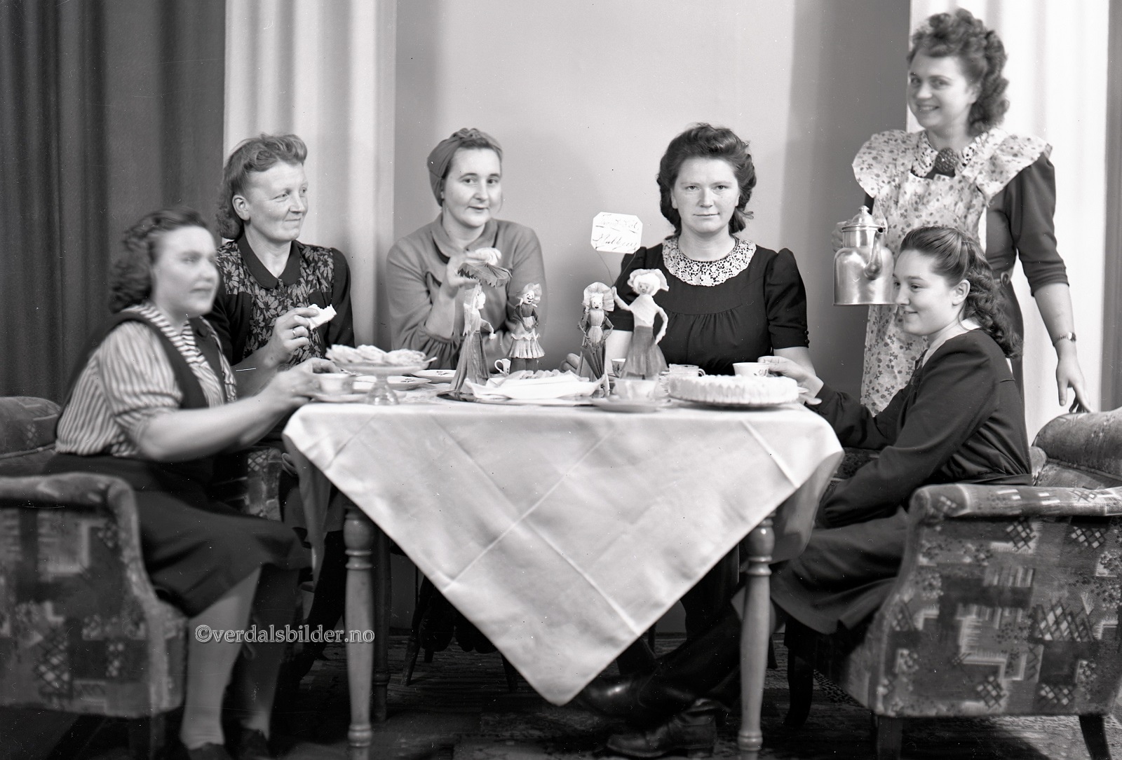 Dameselskap hos Ellinor Anderson omkring 1955 -- Bilde etter Olga Anderson. Har du korrigeringer, nye navn eller en kommentar? Ring eller send sms til 472 97 311 eller 456 00 950 Det beste er å sende en E-post til: post@verdalsbilder.no Tips noen om dette bildet : Klikk her Forstørre bildet Bruk ctrl-knapp + musehjul oppover for å forstørre bildet. Bruk ctrl-knapp + musehjul nedover for å forminske bildet Du kan også bruke "ctrl-knapp" samtidig med "+" og "-" på det numeriske tastaturet. "Ctrl" og "*" (eller null) tilbakestiller størrelsen | ||||