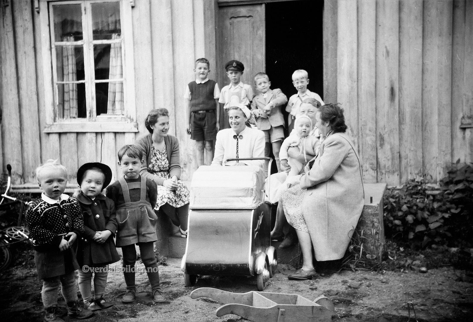 Barn og voksne samlet på trappa til Stenebua i Vuku i 1949. -- Hjelp med navna og utlånt av Just Roar Wohlen. Har du korrigeringer, nye navn eller en kommentar? Ring eller send sms til 472 97 311 eller 456 00 950 Det beste er å sende en E-post til: post@verdalsbilder.no Tips noen om dette bildet : Klikk her Forstørre bildet Bruk ctrl-knapp + musehjul oppover for å forstørre bildet. Bruk ctrl-knapp + musehjul nedover for å forminske bildet Du kan også bruke "ctrl-knapp" samtidig med "+" og "-" på det numeriske tastaturet. "Ctrl" og "*" (eller null) tilbakestiller størrelsen | ||||