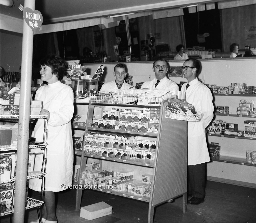Betjening på "gammelkolonialen" til Verdal Samvirkelag i Sørgata i 1962. -- Foto av Henning Anderson. Utlånt av SNK. Har du korrigeringer, nye navn eller en kommentar? Ring eller send sms til 472 97 311 eller 456 00 950 Det beste er å sende en E-post til: post@verdalsbilder.no Tips noen om dette bildet : Klikk her Forstørre bildet Bruk ctrl-knapp + musehjul oppover for å forstørre bildet. Bruk ctrl-knapp + musehjul nedover for å forminske bildet Du kan også bruke "ctrl-knapp" samtidig med "+" og "-" på det numeriske tastaturet. "Ctrl" og "*" (eller null) tilbakestiller størrelsen | ||||