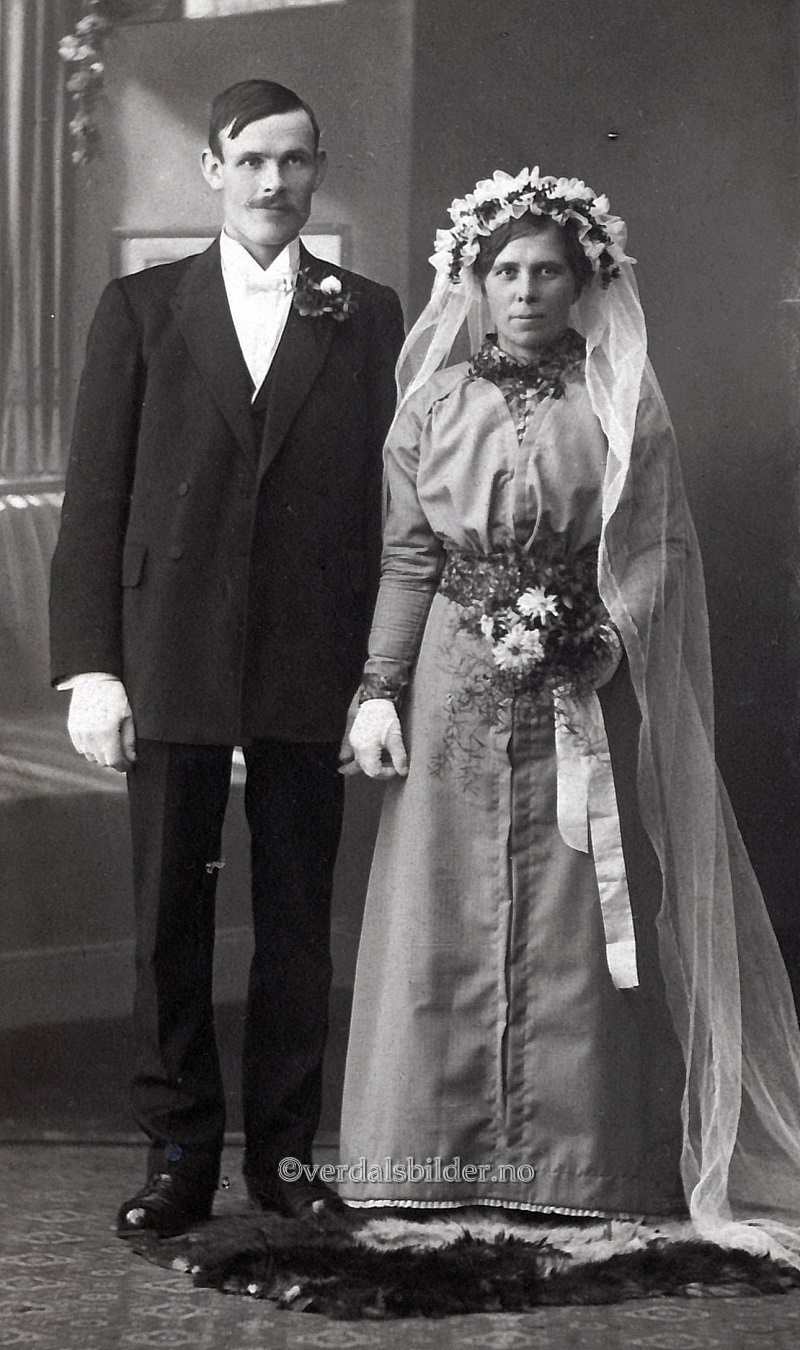 Ekteparet Enes på heimen Stubban i Trones i 1915. -- Stubban ligg til høyre når en svinger ned til Sørskaget. Aksel var født i 1889 av foreldrene Bernt og Sirianna Enes. Bernt var husmann på Tronesvald. Ida Amalie var fra Sparbu, foreldre Jonette og Karl Nordberg. Aksel og Ida var barnløs men hadde en adoptivdatter med navnet Lilly iflge Norges Bebyggelse. Bildet utlånt av Brit Hogstad Mære. Har du korrigeringer, nye navn eller en kommentar? Ring eller send sms til 472 97 311 eller 456 00 950 Det beste er å sende en E-post til: post@verdalsbilder.no Tips noen om dette bildet : Klikk her Forstørre bildet Bruk ctrl-knapp + musehjul oppover for å forstørre bildet. Bruk ctrl-knapp + musehjul nedover for å forminske bildet Du kan også bruke "ctrl-knapp" samtidig med "+" og "-" på det numeriske tastaturet. "Ctrl" og "*" (eller null) tilbakestiller størrelsen. | ||||