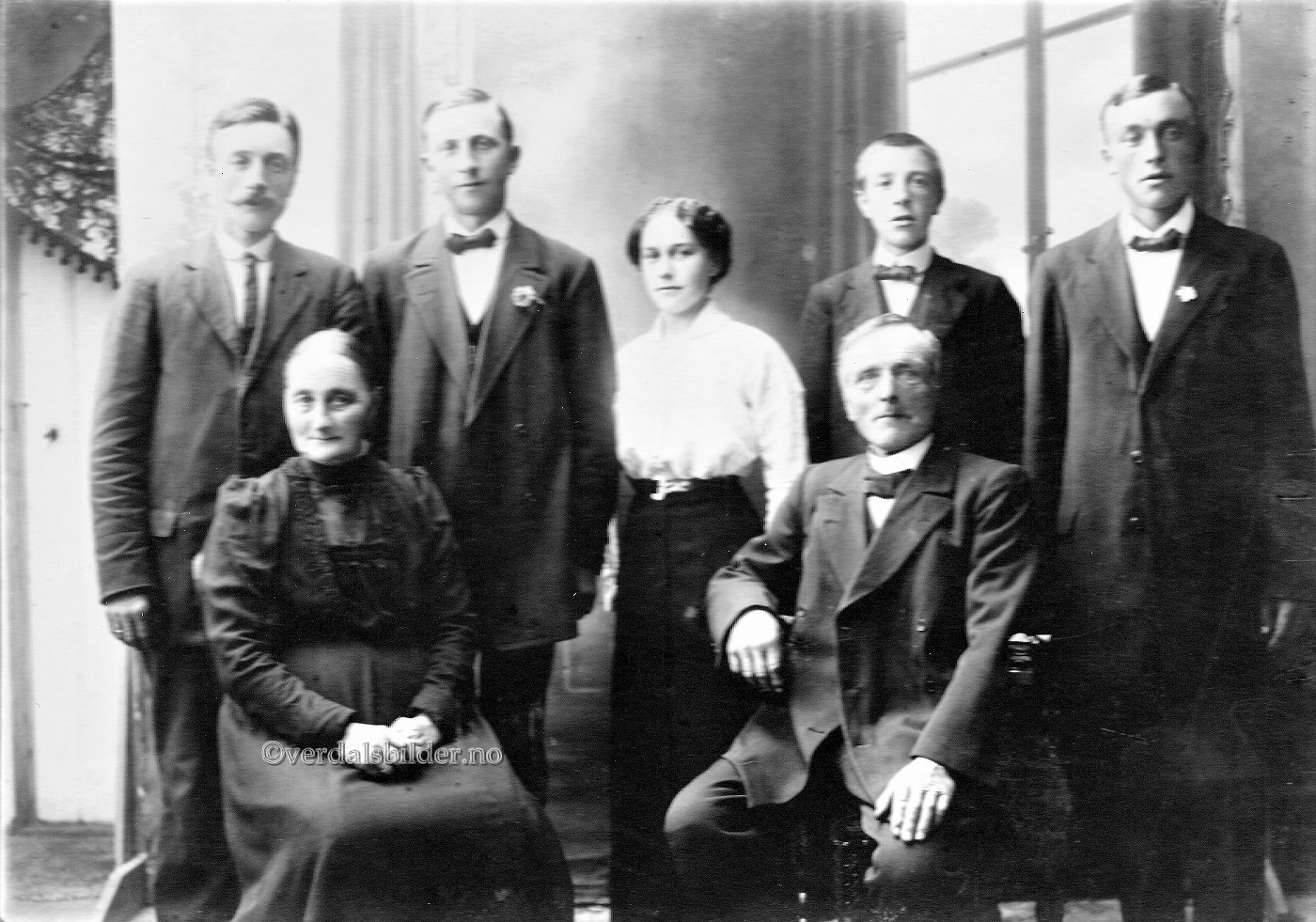 Familiebilde fra Veita omkring i 1917. -- Usikker tidfestiing, men ut fra at Olaf Høknes er oppstasa med blomster i knapphullet så er kanskje bildet fra bryllupet til han og Marie. Utlånt av Marita Sekkenes. Hjelp med navn, Solveig Ness. Har du korrigeringer, nye navn eller en kommentar? Ring eller send sms til 472 97 311 eller 456 00 950 Det beste er å sende en E-post til: post@verdalsbilder.no Tips noen om dette bildet : Klikk her Forstørre bildet Bruk ctrl-knapp + musehjul oppover for å forstørre bildet. Bruk ctrl-knapp + musehjul nedover for å forminske bildet Du kan også bruke "ctrl-knapp" samtidig med "+" og "-" på det numeriske tastaturet. "Ctrl" og "*" (eller null) tilbakestiller størrelsen | ||||