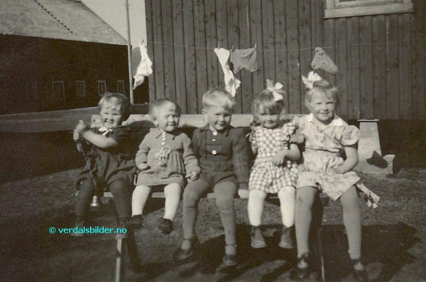 | På Nord-Hallem, sannsynligvis år1947 . Se flere navnsatte bilder Før markør opp til haka på personene for å få opp navn |