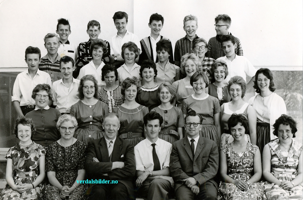 Framhaldskolen i 1960 . -- Navnsatt av Leif Åge Rindsem. Da en ikke kjenner etternavna på alle i dag har en brukt navna når bildet ble tatt.