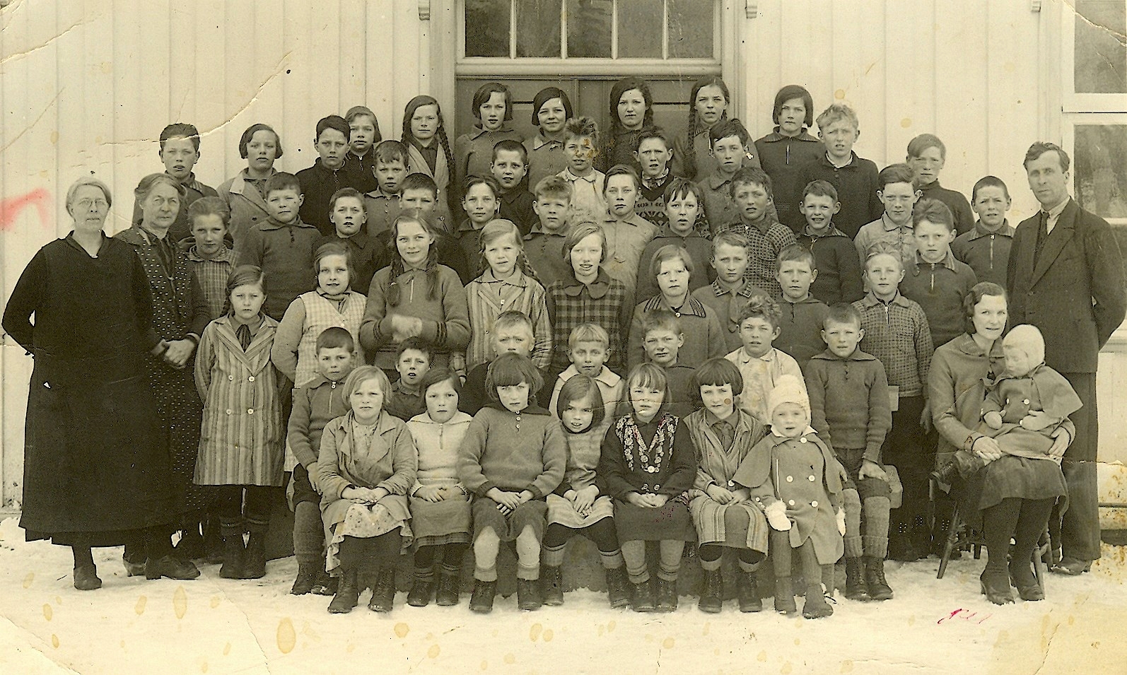 Lærere og elever fra 1. 3. og 5.klasse ved Vinne skole i 1933 -- Utlånt av Jørgen Johnsen