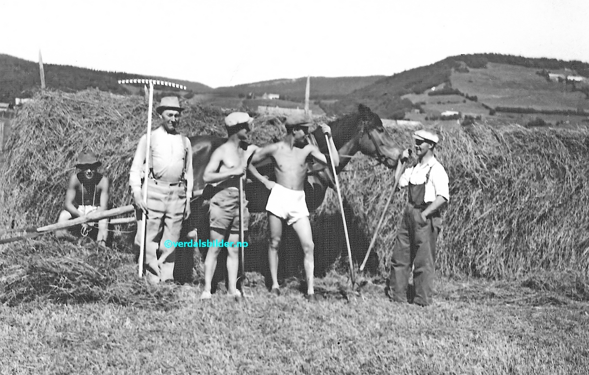 Slåttonn på Sør-Minsaas i 1946 . -- Utlånt av Volhaugen Grendehus. Har du korrigeringer, nye navn eller en kommentar? Ring eller send sms til 472 97 311 eller 456 00 950 Det beste er å sende en E-post til: post@verdalsbilder.no Tips noen om dette bildet : Klikk her Forstørre bildet Bruk ctrl-knapp + musehjul oppover for å forstørre bildet. Bruk ctrl-knapp + musehjul nedover for å forminske bildet Du kan også bruke "ctrl-knapp" samtidig med "+" og "-" på det numeriske tastaturet. "Ctrl" og "*" (eller null) tilbakestiller størrelsen | ||||