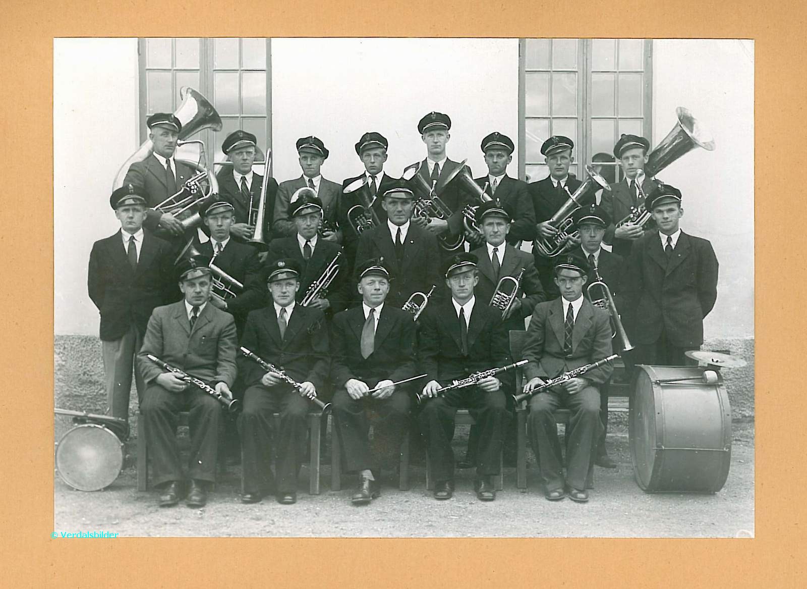 Arbeidernes musikkorps i 1946 -- Stiftet i 1921. Dirigent Johan Solberg.