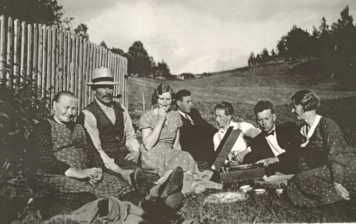 | Med sveivegrammofon oppi Heggli sommeren i 1934.