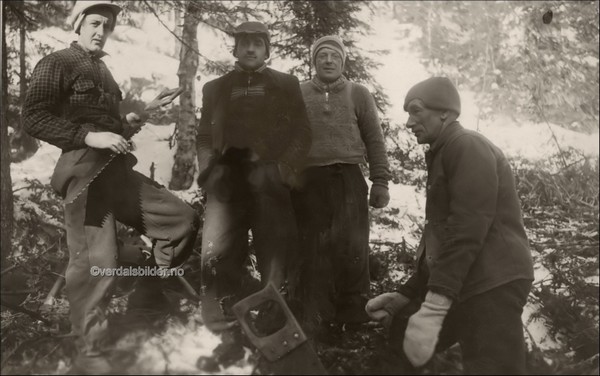 Uke 1248   Skogsarbeidere i sprengkulde omkring år 1950. Lasse synger vårvisa si.
