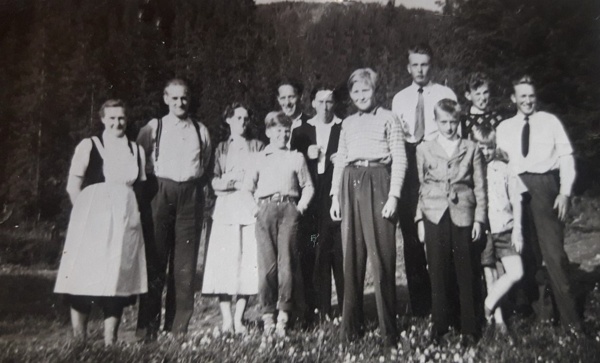 Personene i forgrunnen er Ingrid Robertsen Nordnes, Ivar Nordnes og Hulda Nordnes. Foto av Magne Nordnes. Opplysninger og utlånt av Alv Okkenhaug.