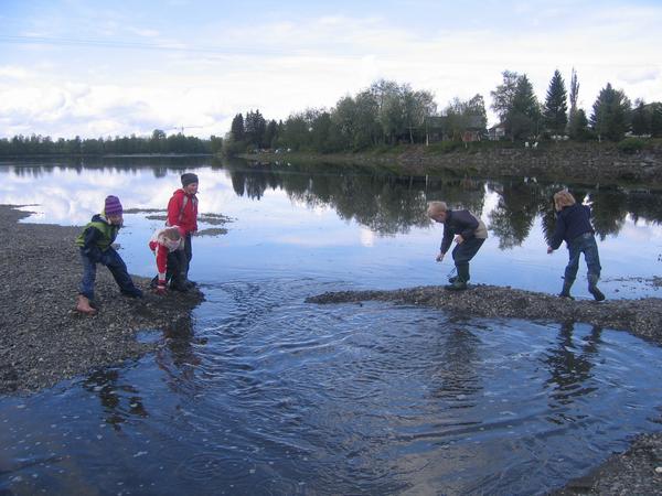 Uke 0821   Klasse 2b fra Vinne skole storkoser seg i elva    Foto: Ole M. Larsen