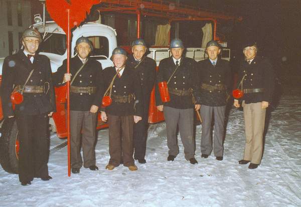 Uke 0820   De gamle brannmenn og den gamle brannbilen i 1982.