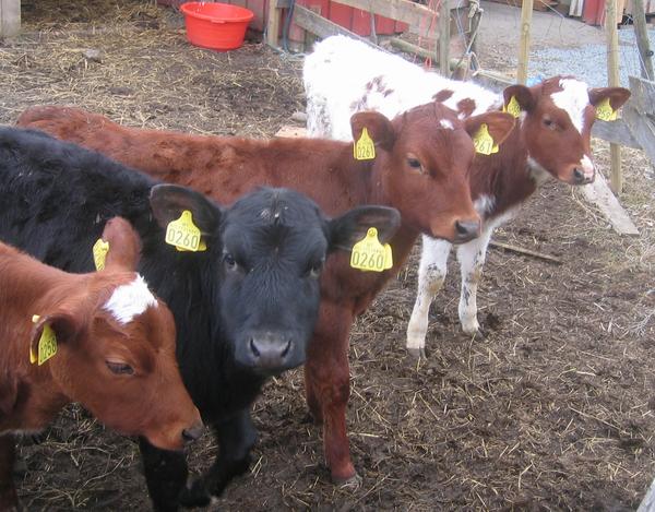 Enda et bilde fra Hallbakkan, tatt fra "sykkelsetet". Kalvene 0258, 0260, 0261 og 0259 opplever sin første vår. De stilte seg på rekke og "ba" om å bli tatt bilde av.