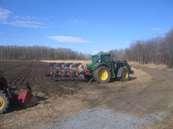 Ole Indal er tidlig ute i år med å pløye åkeren helt nede ved elva.