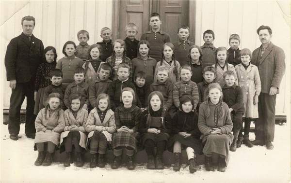Uke 0807   2., 3., 6, og 7 årskull ved Vuku skole vinteren 1953/54. Foto av Groven.