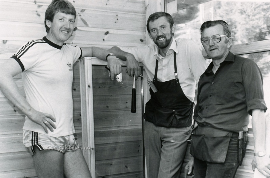 Uke    Dugnadsfolk under bygging av klubbhus i Blømmen Skisenter sommeren 1988.