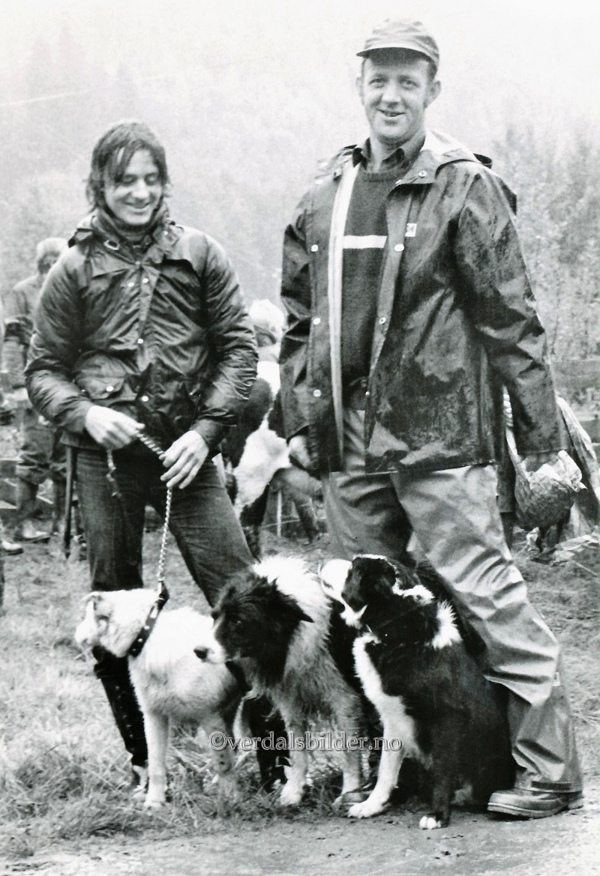 Navnpekere: Eystein Ness - Her med sine hunder etter neddriving fra beite ved Stubskinsvola til samlingstrøa i området ved Setran i Inndalen.
