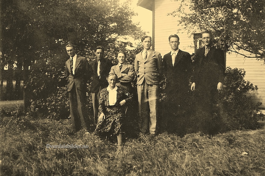 Uke    Olaug Amalie Vangstad med sine seks sønner en gang i begynnelsen av 1940-åra.