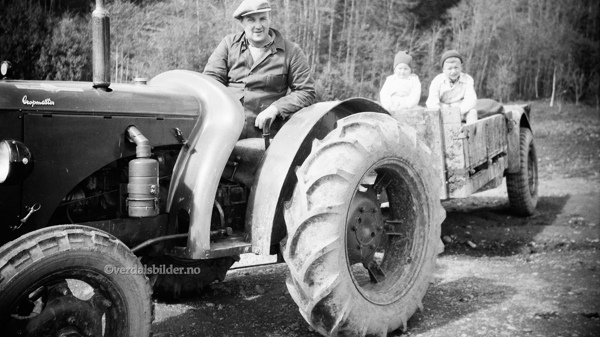 Uke    Bonden på Nord-Holmen med passasjerer på traktorhengeren omkring år 1950 ?