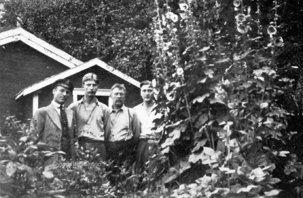 Uke    Far og to sønner og fotografen i hagen på Vestly i Helgådalen omkring 1935 ?