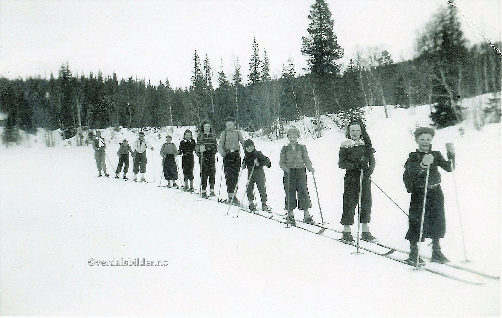 Skoleelever fra Kleppen og Vera på skitur til Ottmosetra i 1949.